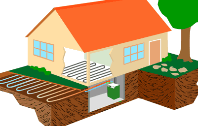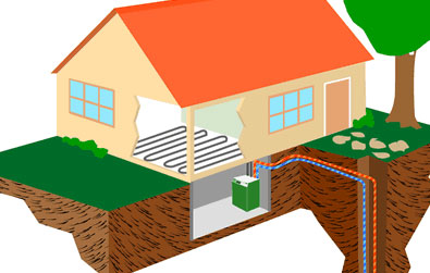 L’énergie contenue dans le sol est ainsi récupérée pour assurer le chauffage et le rafraîchissement de l’habitation.